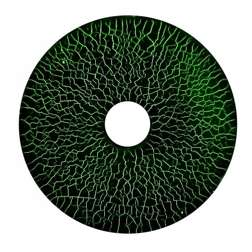 Špeciálna úprava povrchu trvalo magnetizovaného kovového disku vytvára prírodné, hrubé (vyrobeného brúsením) a jemné (napäťové), trhliny.
